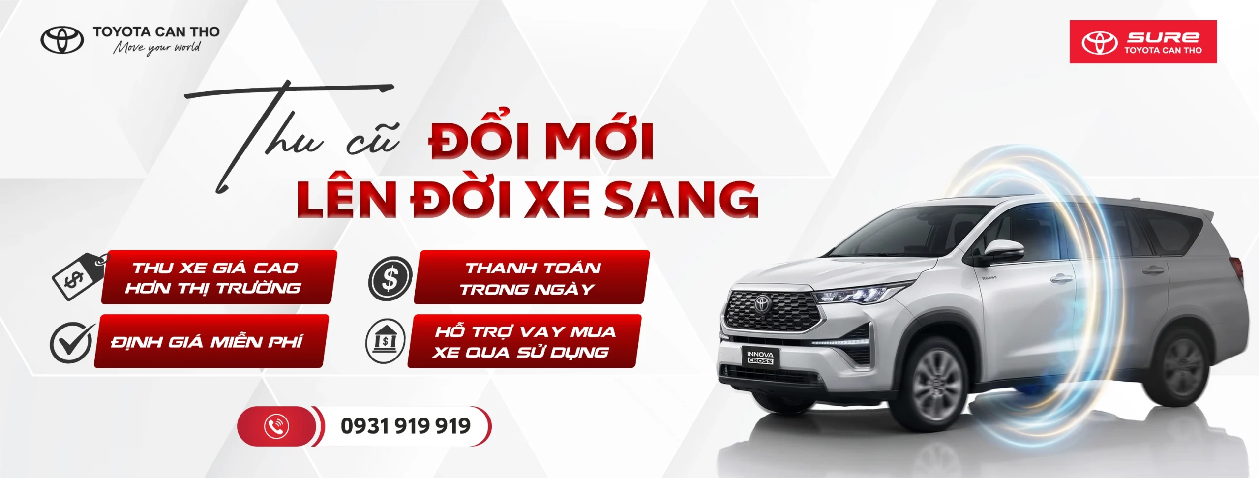 Mua bán các dòng xe Toyota qua sử dụng như: Vios, Camry, Altis, Innova, Fortuner, v.v. Được kiểm định tiêu chuẩn Toyota 176 hạng mục, bảo hành chính hãng 20.000km hoặc 12 tháng.